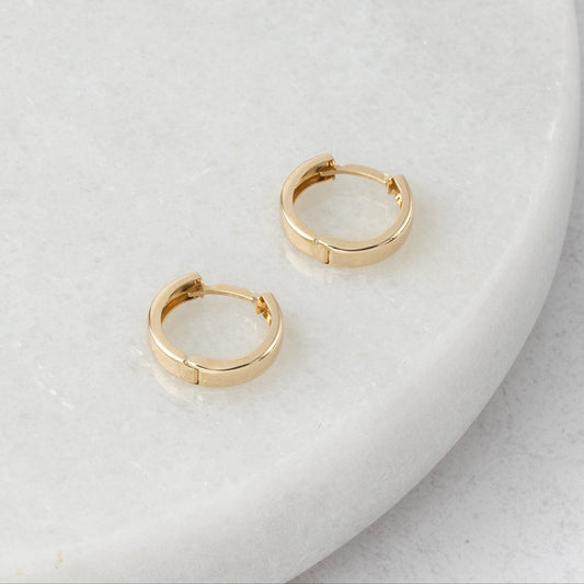 18k Gold Tiny Huggie Earrings for Men, Yellow Solid Gold Hoop Earrings 12mm