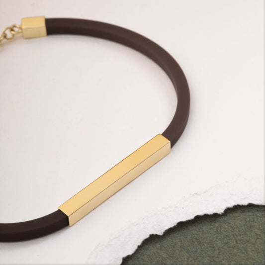 18K Gold Custom Engraved Bar Bracelet Name Engraving, Perfect Gift for Dad.