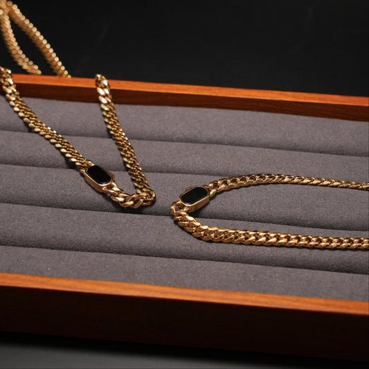 18K Gold Cuban Bracelet Chain - Black Onyx Gemstone