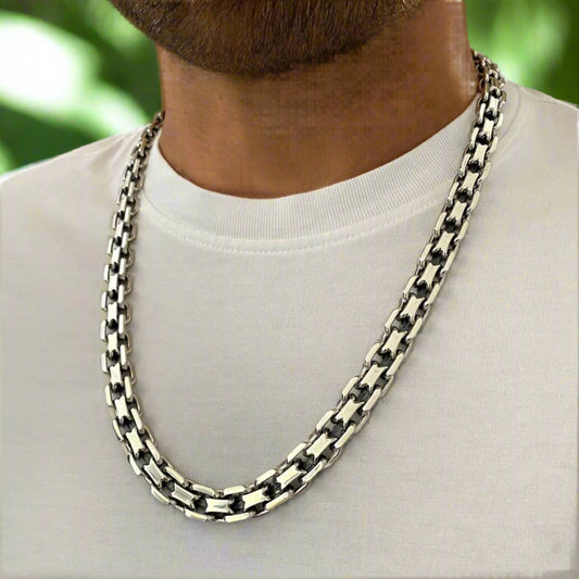 9-MM Bold Rapper Chain: Solid Silver with Masculine Design and Chunky Appeal