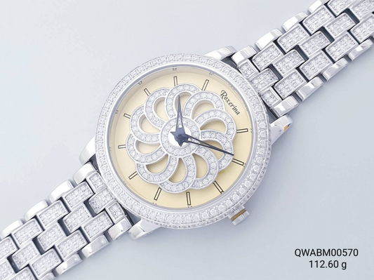 Pure Silver Automatic Men's Round Watch With Cubic Zirconia Unique Link Bracelet