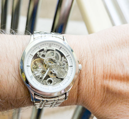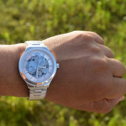 Men's Automatic 925 Silver Watch - Skelton Watch