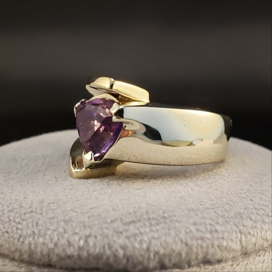 Amethyst Rings, Vintage 14k Amethyst Rings, Custom 14k Two Tone Amethyst Ring 7
