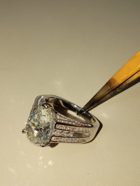 Men's Wedding Band - 14k Gold Moissanite Diamond Ring