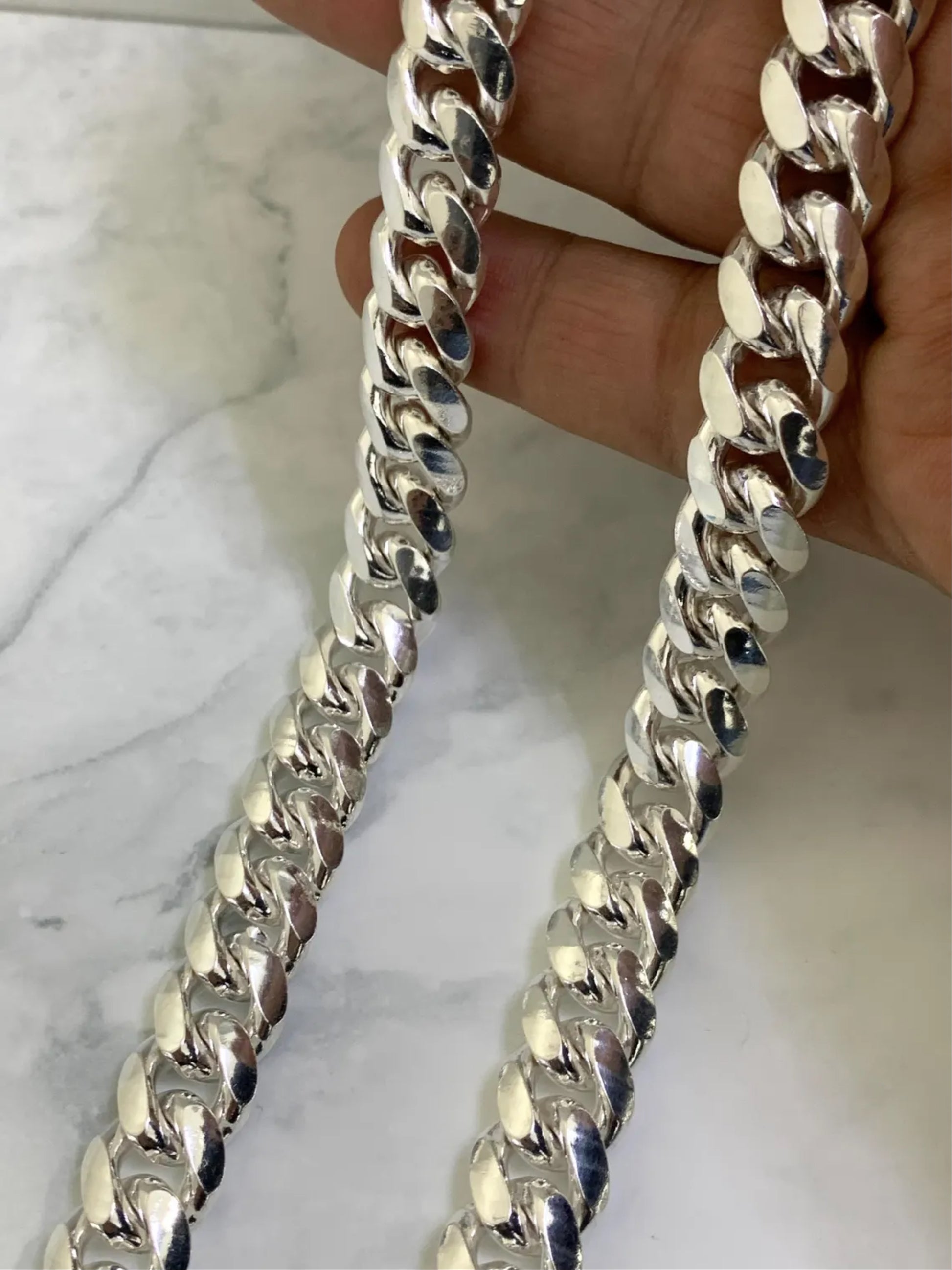 Elevate your style with this bold and durable 925 Chunky Link Chain designed for men who want to make a statement. Crafted from genuine 925 Sterling Silver with an authenticity stamp, this solid Miami Cuban Link Chain features heavy, thick links measuring approximately 12.5 to 13mm in width for a strong, masculine look.
