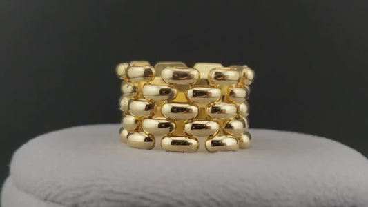 14 Karat Gelbgold, 5-reihiges flexibles Panther-Gliederkettenband – ovaler Bubble-Gliederkettenring