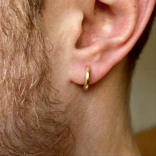 18k Gold Tiny Huggie Earrings for Men, Yellow Solid Gold Hoop Earrings 12mm