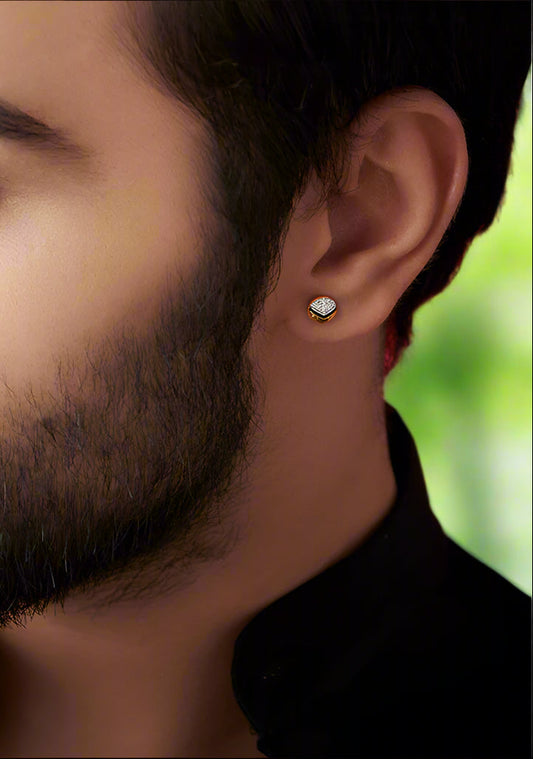 18k Gold Tiny Huggie Earrings for Men, Yellow Solid Gold Hoop Earrings 12mm