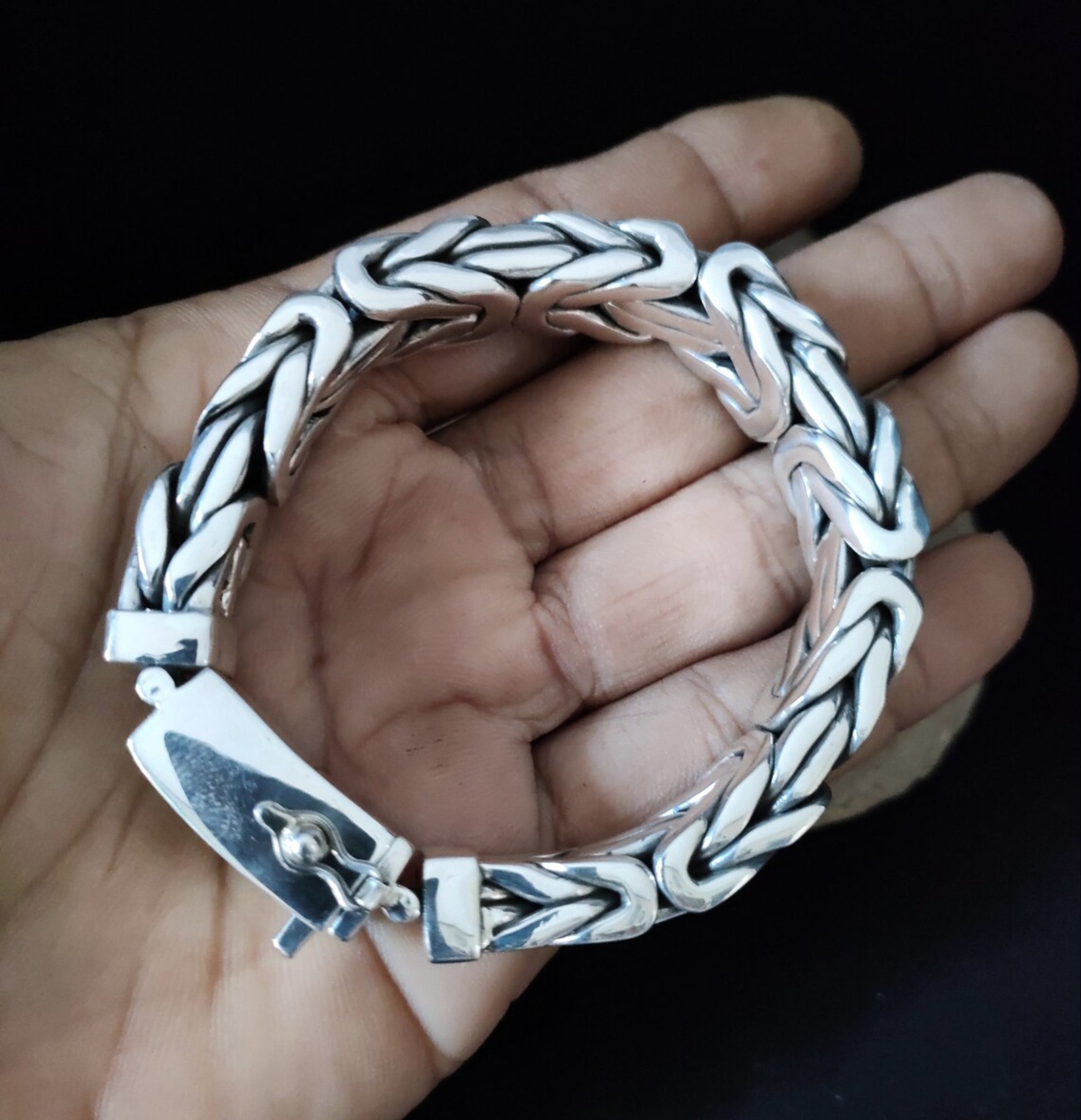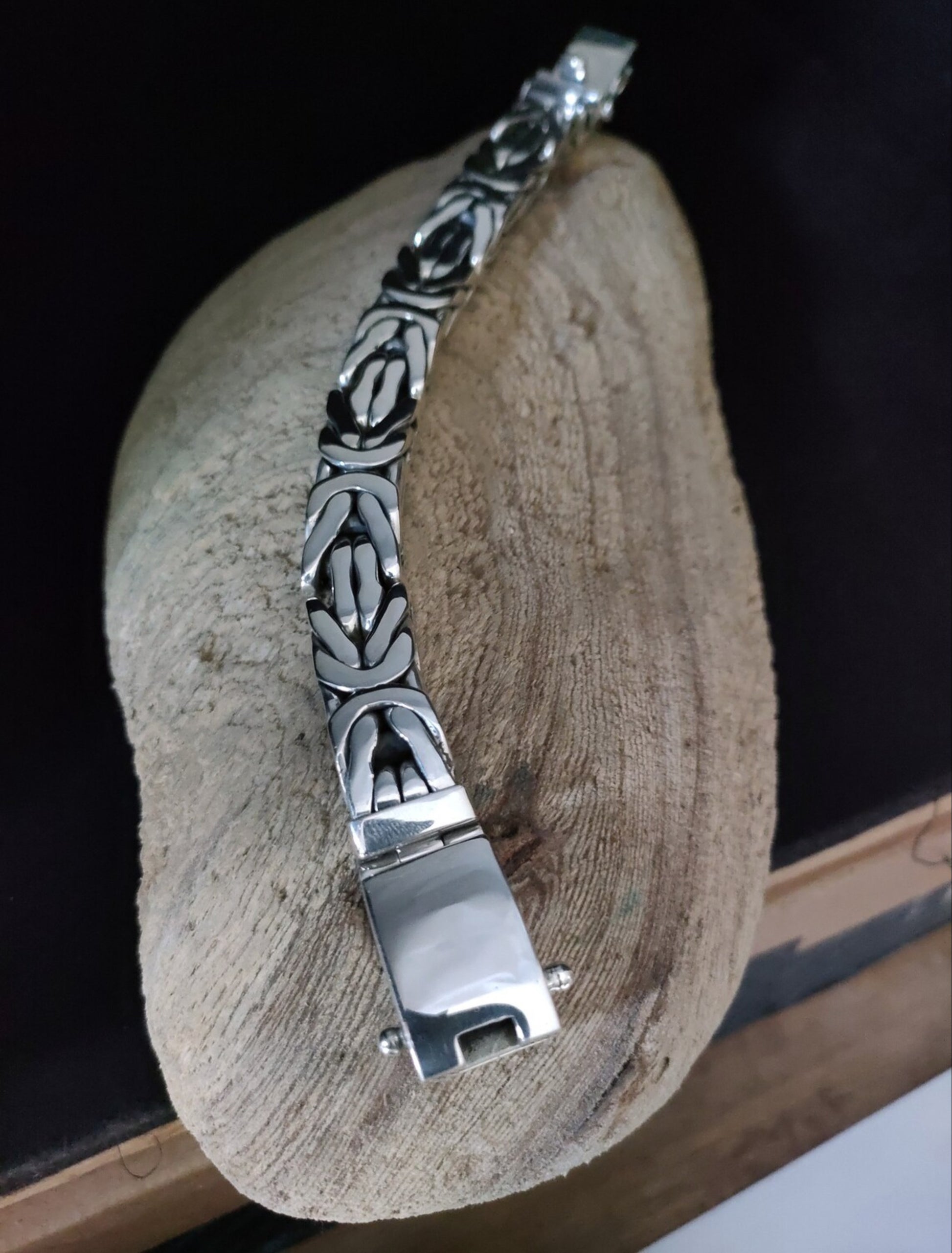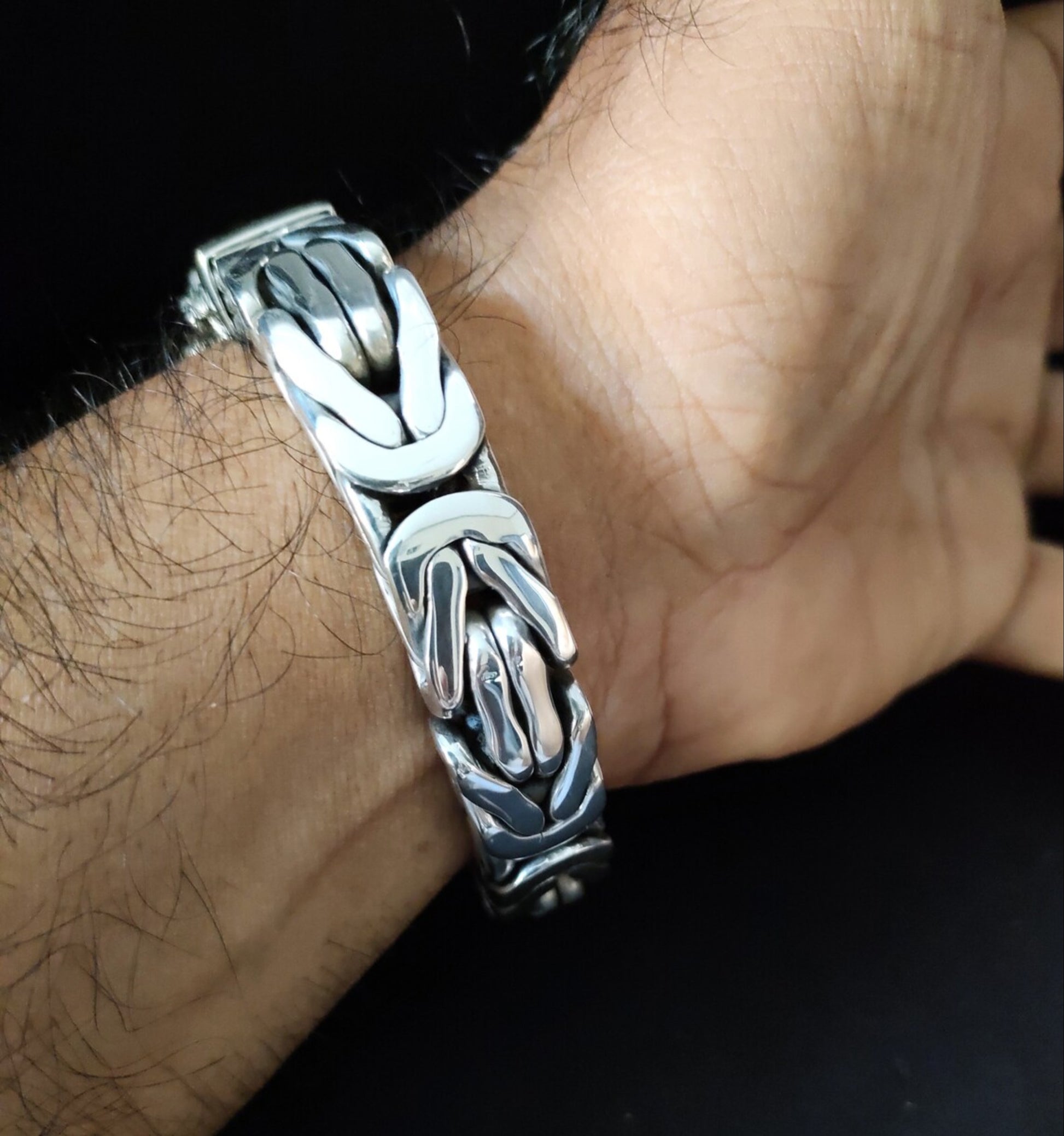 Men's sterling bracelet, heavy silver bracelet, Byzantine chain bracelet, handmade jewelry.