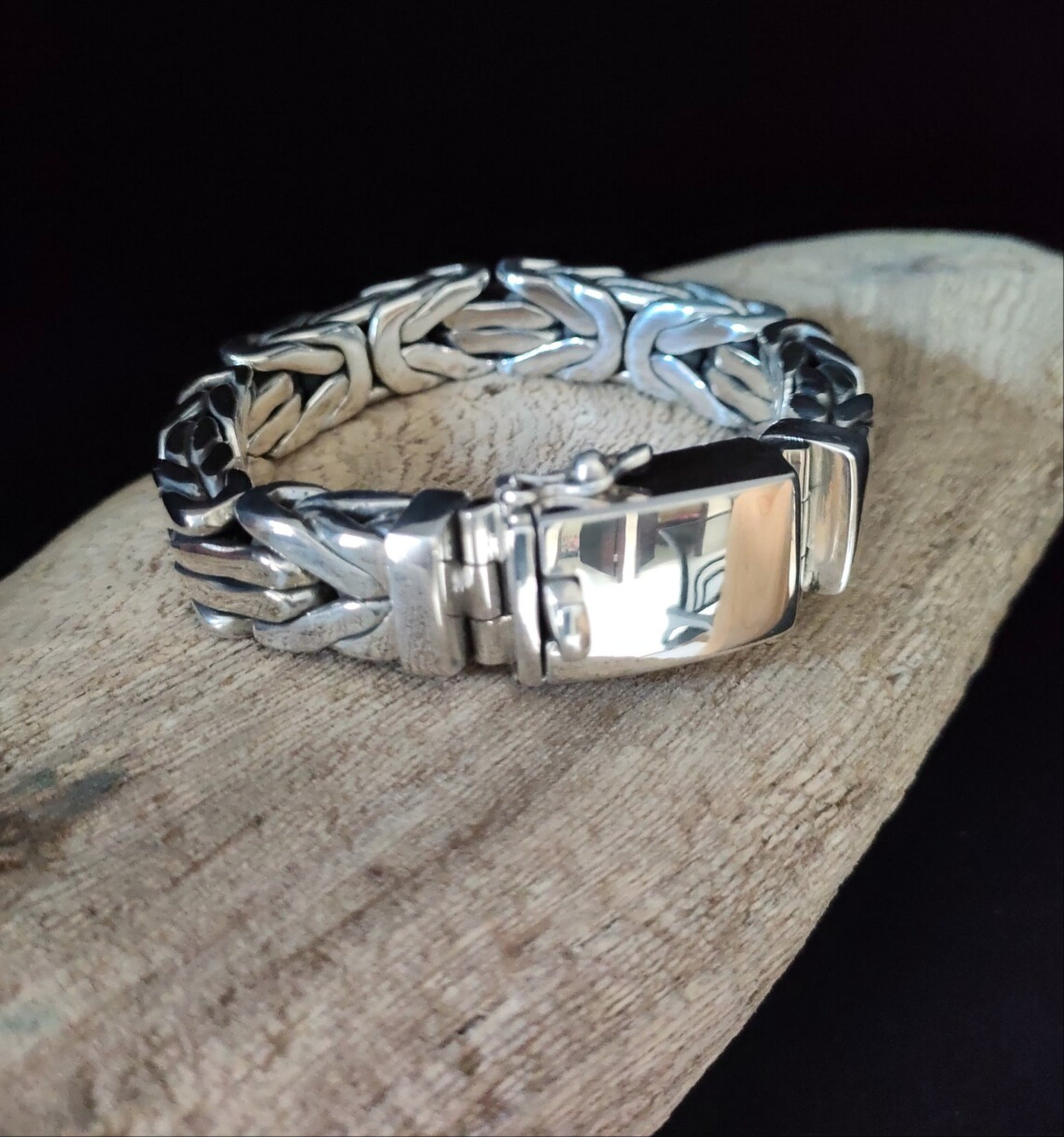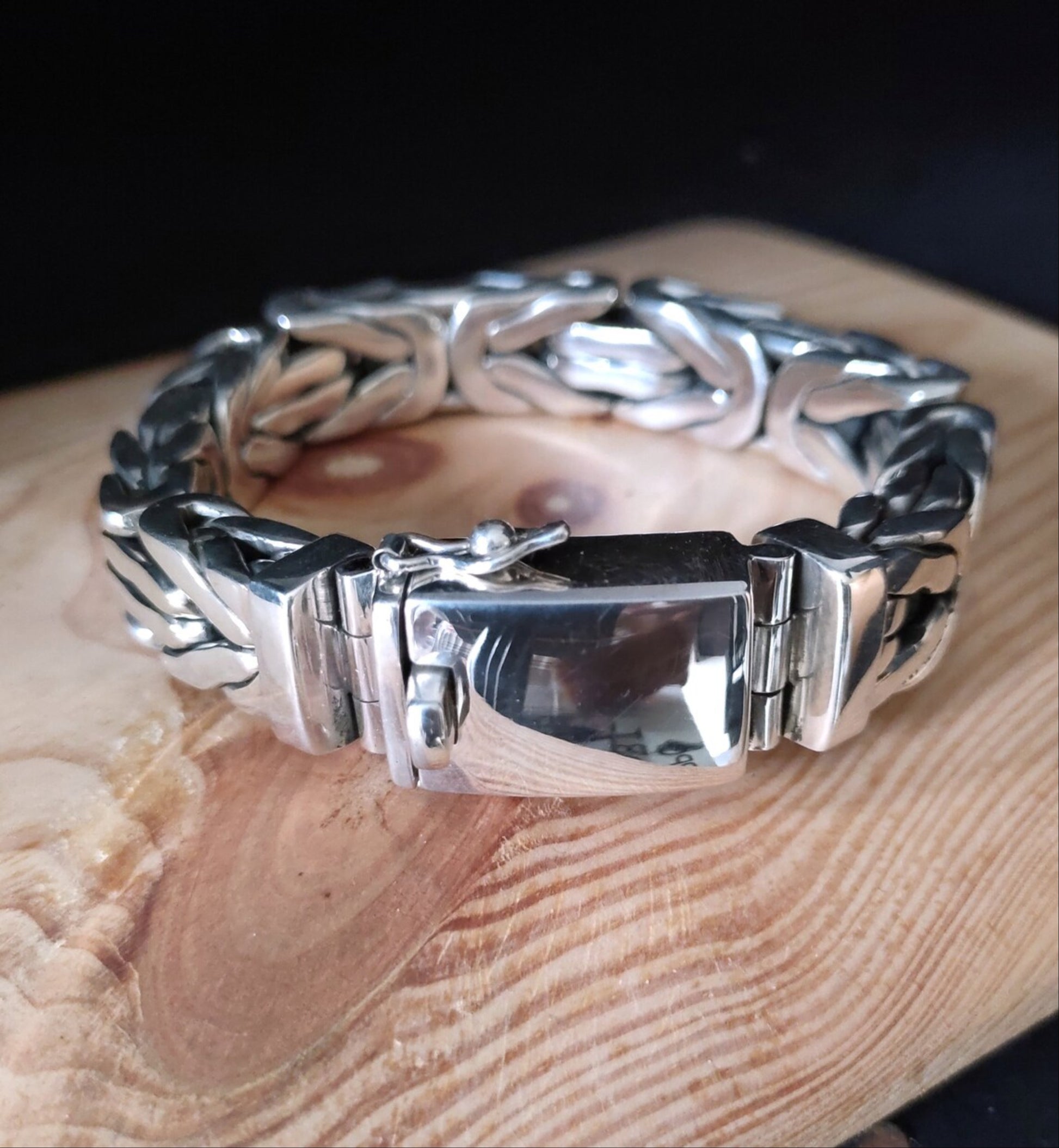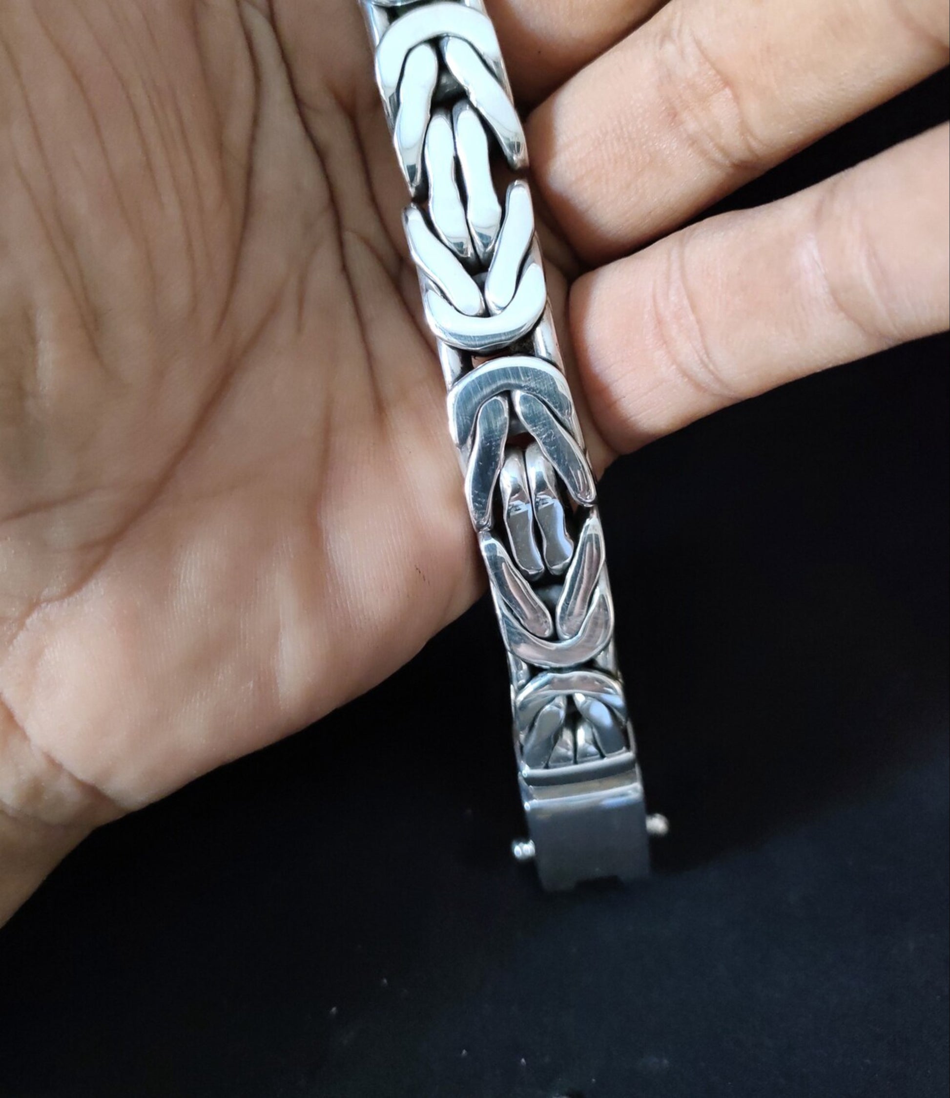 Men's sterling bracelet, heavy silver bracelet, Byzantine chain bracelet, handmade jewelry.