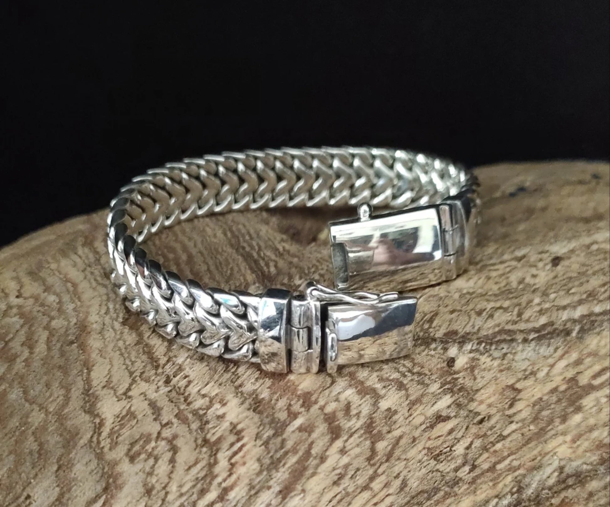 Command attention with this Luxury Men’s Heavy Curb Chain Bracelet, crafted from solid 925 sterling silver. Weighing a bold 120 grams and measuring 13mm wide, this bracelet is made for men who appreciate quality, strength, and standout style.
