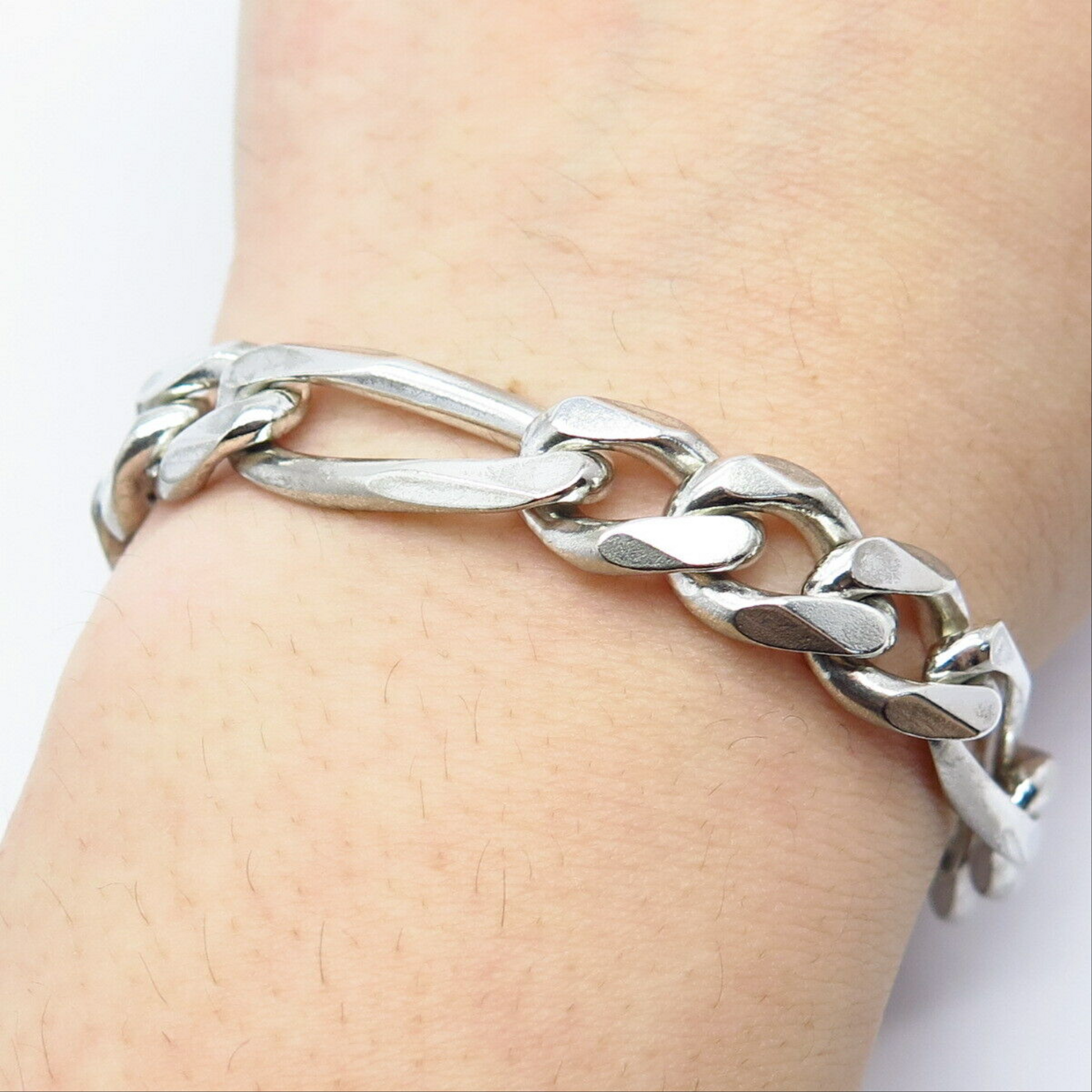 Massive Miami Solid Silver Figaro Link Chain Bracelet