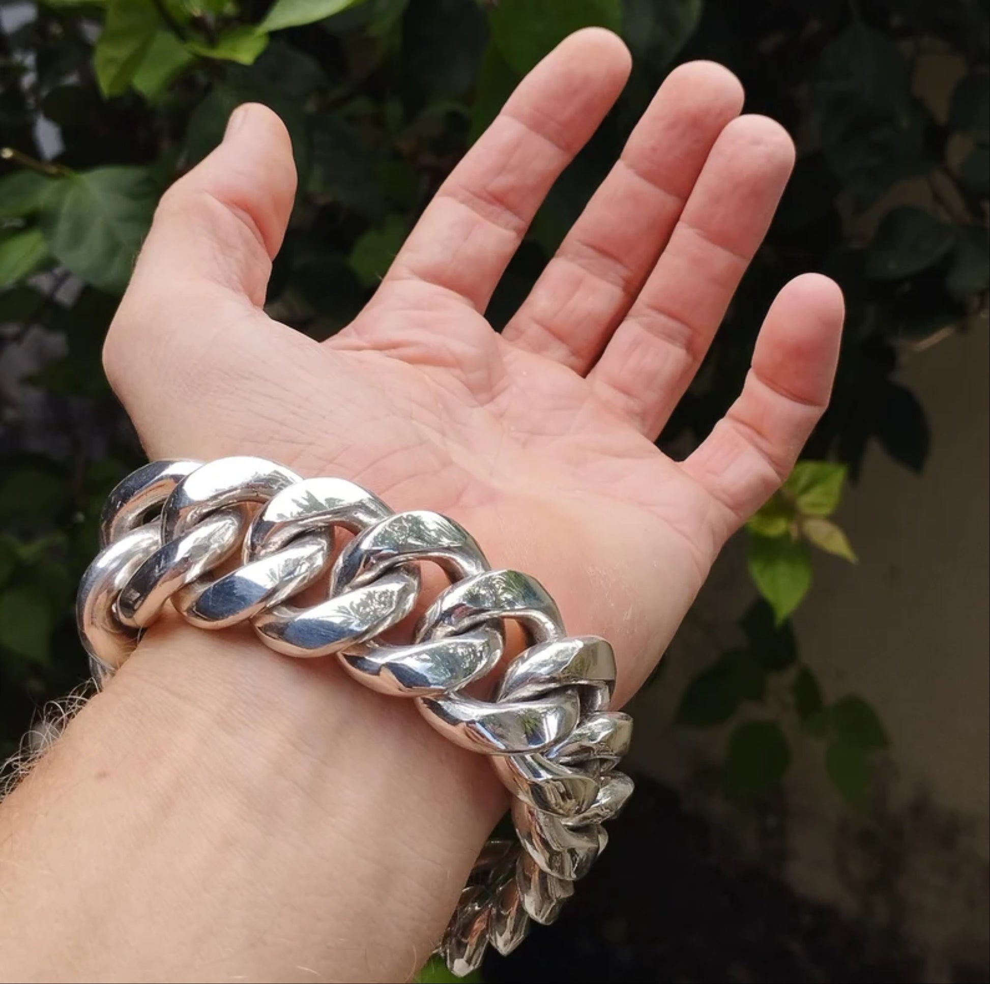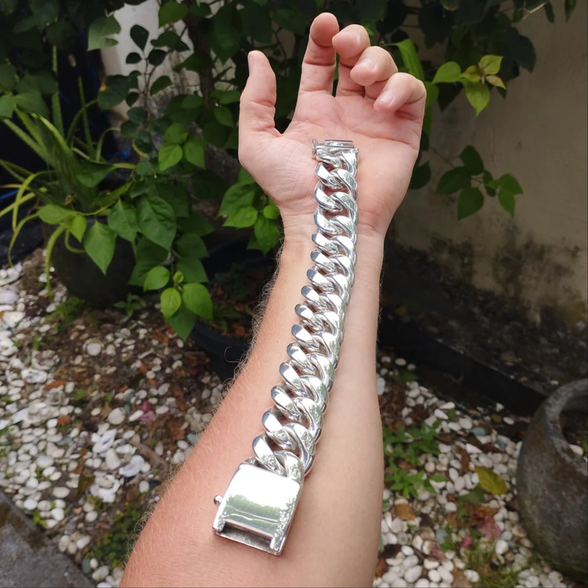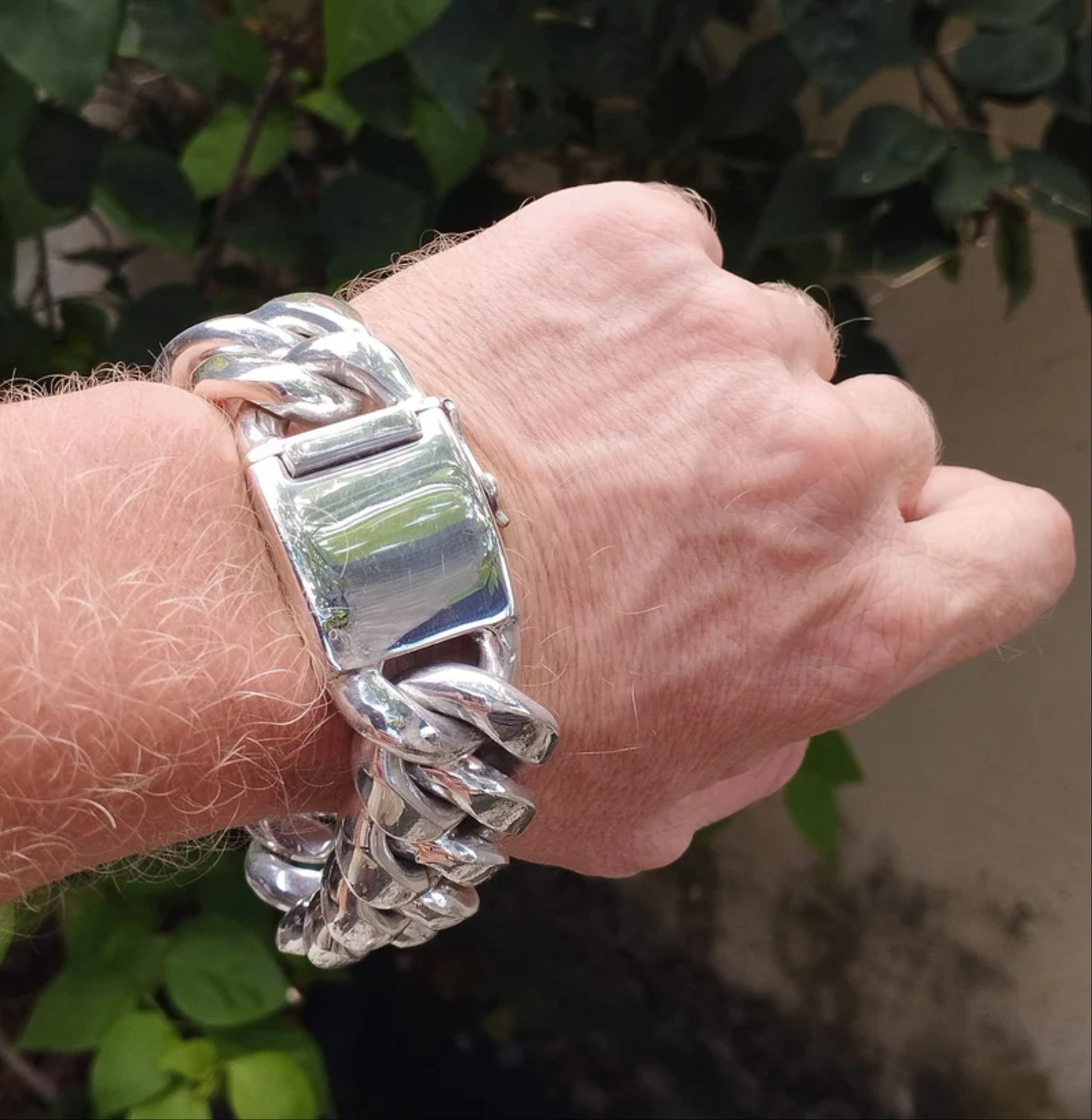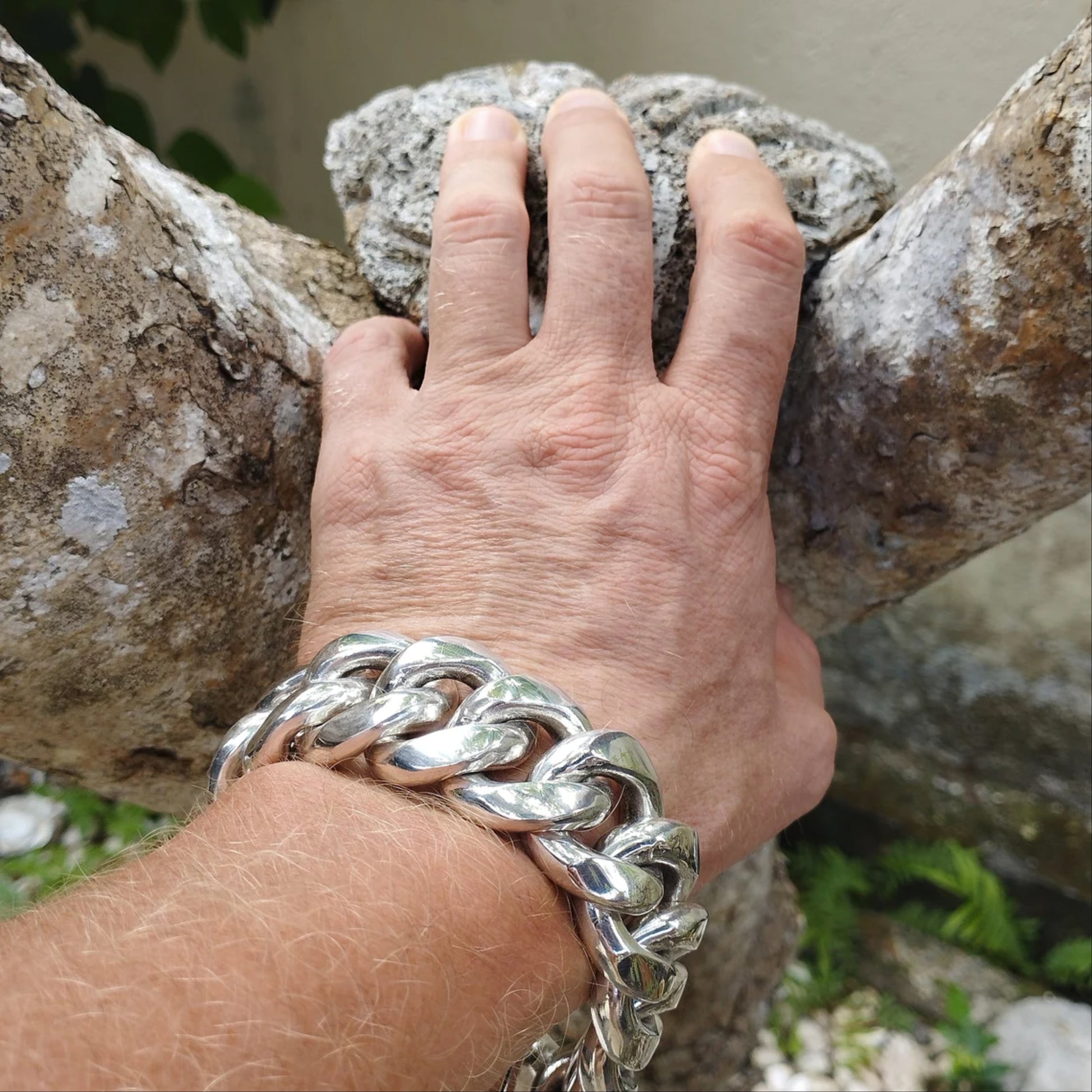 Handmade with care and precision, this chunky Cuban link bracelet brings powerful street style mixed with luxury design. All photos are original — no filters, just pure silver shine!