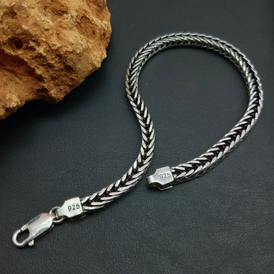 Foxtail 925 Sterling Silver Bracelet, Viking Chain,Oxidized Chain Bracelet.