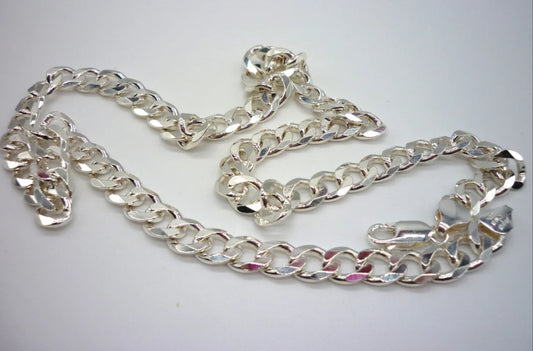Diamond Cut Silver Curb Chain Thick Chunky Necklace 200gr