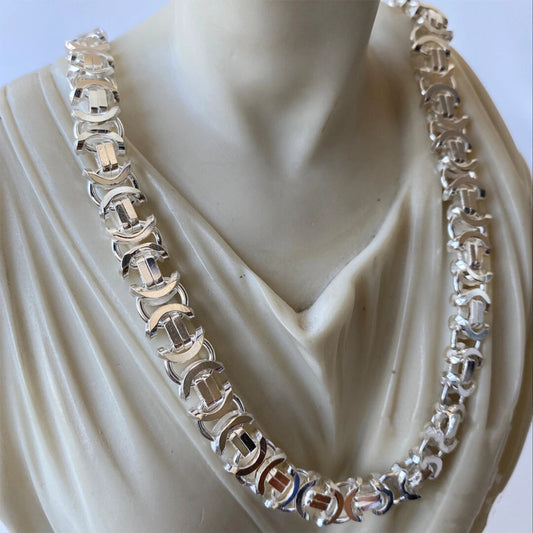 Real 925 Silver Byzantine Chain Necklace 12mm