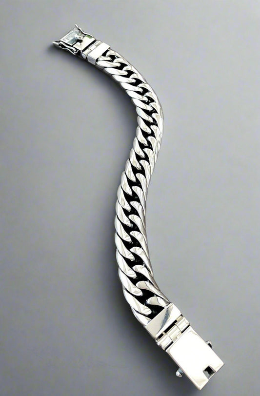 Prong Miami Cuban Link Bracelet, Solid 925 Sterling Silver, Hip Hop, Rapper Bracelet