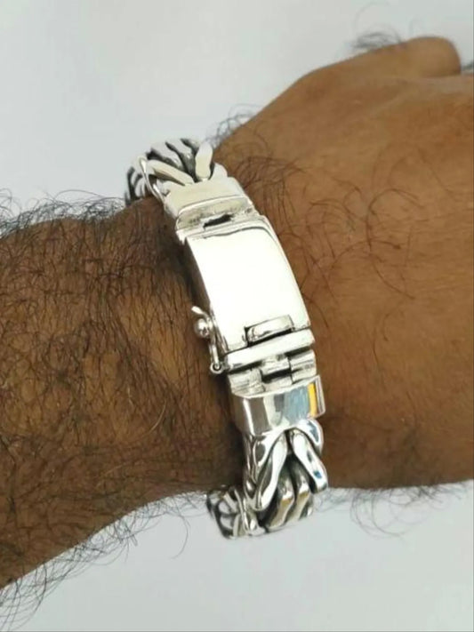 Real 925 Silver Solid Bracelet Men 14mm