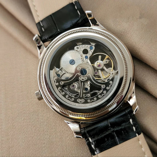 Silver Automatic Men's Round Watch With Cubic Zirconia Unique Link Bracelet
