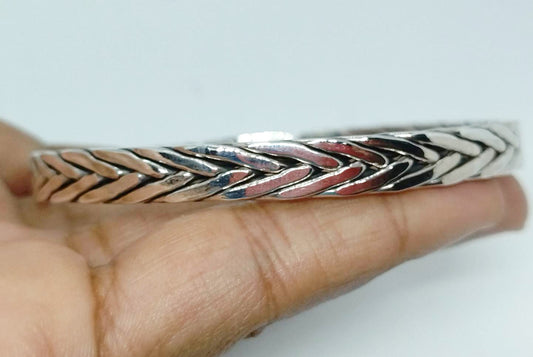 Silver Cuff Bracelet, 925 Sterling Silver Bangle Bracelets for Women Woven Wheat Jewelry Mens Cuff Bracelet