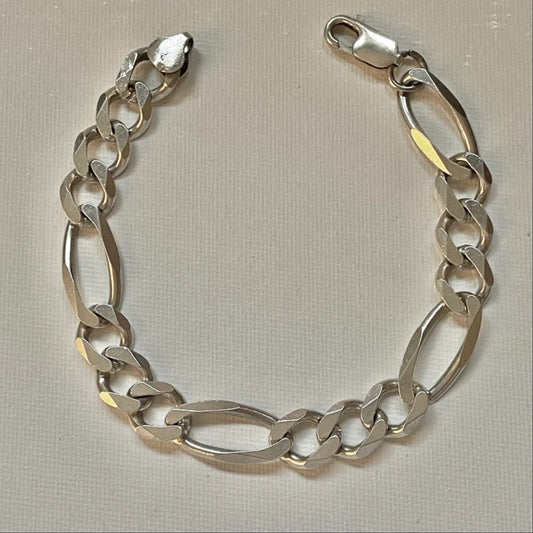 Solid 925 Sterling Silver Figaro Link Chain Bracelet Handmade Italy 8"
