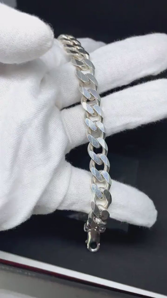 Solid 925 Sterling Silver Cuban Link Men's Chain Bracelet Bikers