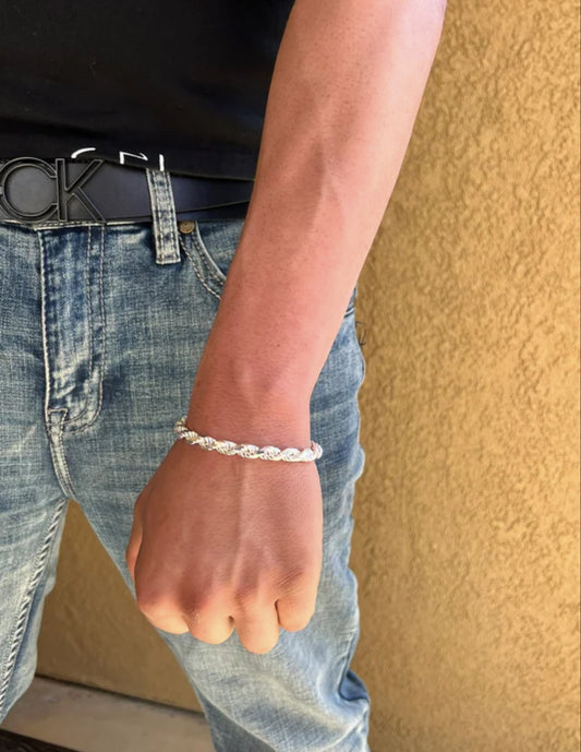 Sterling Silver Rope Chain Bracelet, Real Silver Rope Bracelet, Handmade Layering Chain, Solid Silver Jewelry for Man and Women,Gift for Him