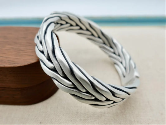 Sterling Silver Mens Cuff Bracelet-Adjustable Silver Knitting Bracelet