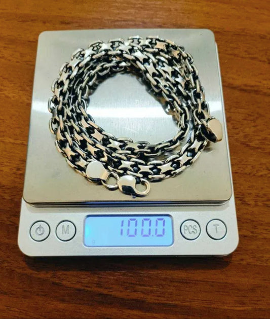 Unique Mens Oxidised Silver Necklace: 925 Sterling Silver Cable Chain with Intricate Design-Mens One-of-a-Kind Solid Silver Jewelry