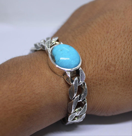 turquoise figaro chain bracelet - 925 sterling silver, december birthstone, gifts for him
