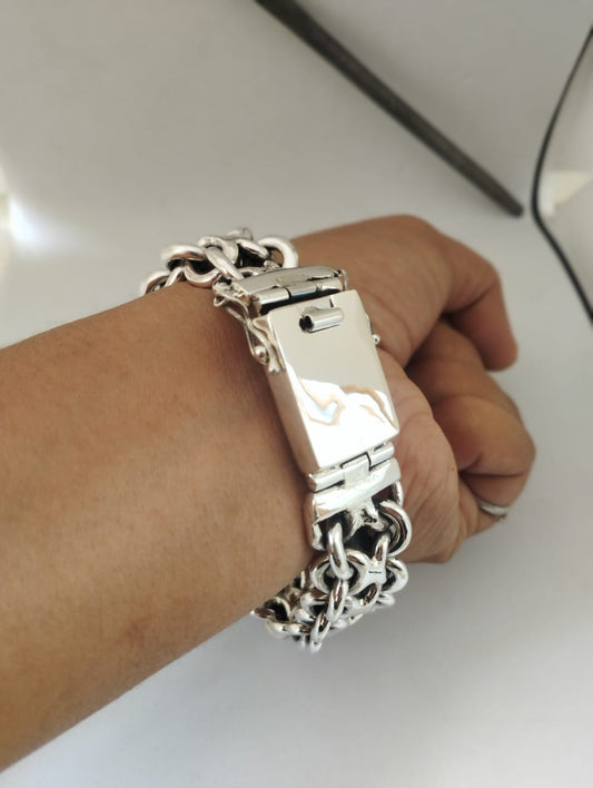 925 Men Sterling Silver Thick and heavy garibaldi chain link bracelet.