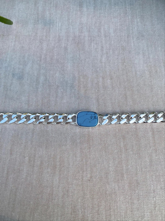 12mm Heavy Curb Silver Bracelet - Turquoise Bracelet