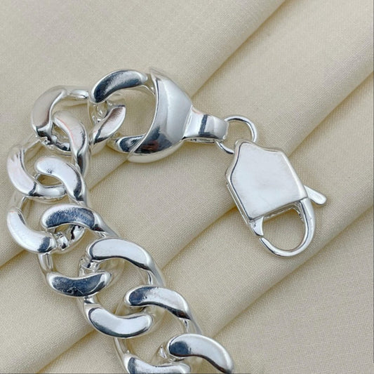 20mm Mens Silver Curb Bracelet - Heavy Bracelet