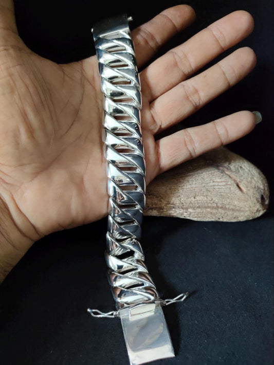 Men's Heavy Link Chunky Bracelet Silver 925 Box Clasp