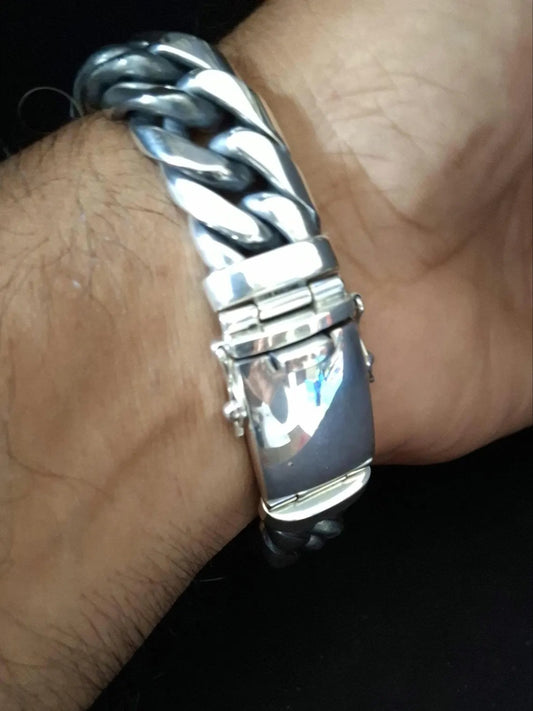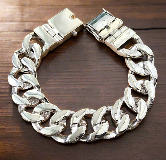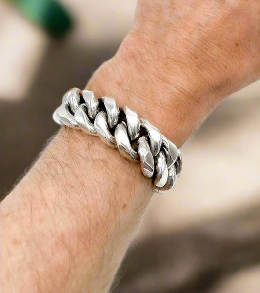 Biker Curb Chain Bracelet - Chunky Silver Bracelet 20mm