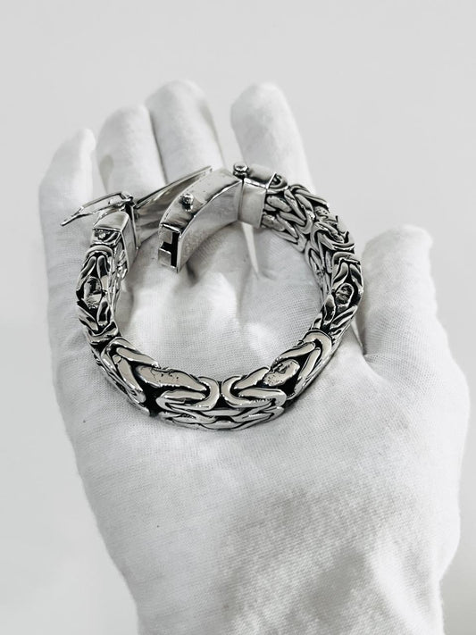 8" Men's Dragon Bone Viking Bracelet: Oxidized 925 Sterling Silver