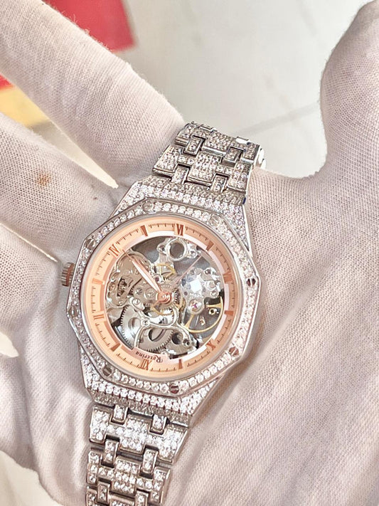 925 Sterling silver Automatic Men's Round Watch Unique Link Bracelet