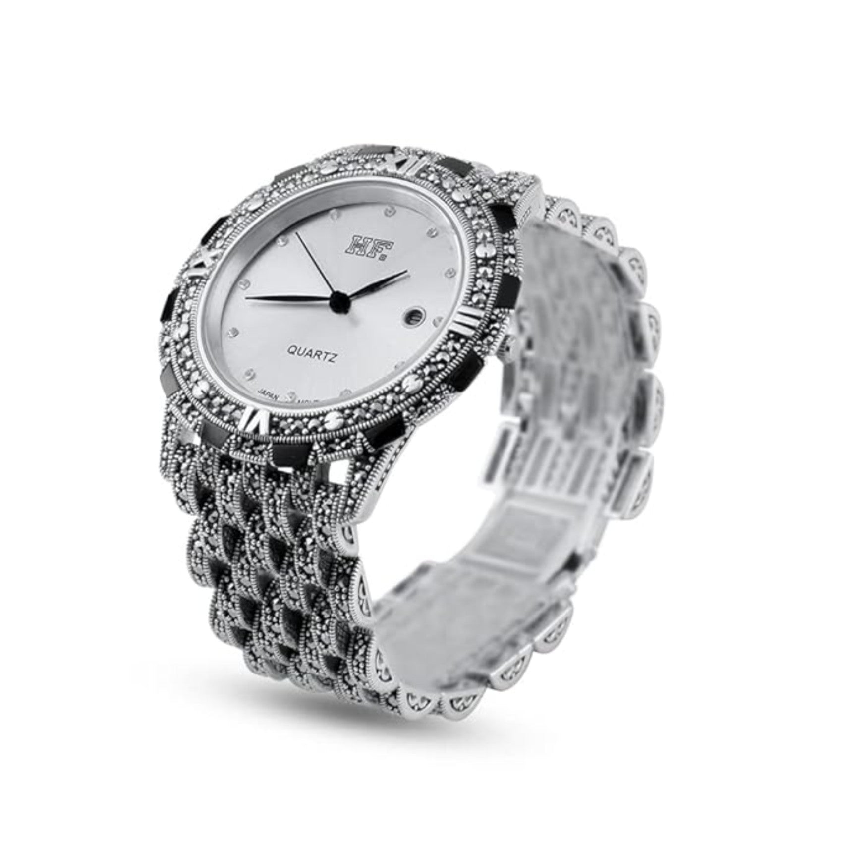 The watch bracelet is made of 925 sterling silver. Completely handmade at all stages of production. The product has a zade floral ornament and an absolutely unique castle. At the request of the customer, the bracelet