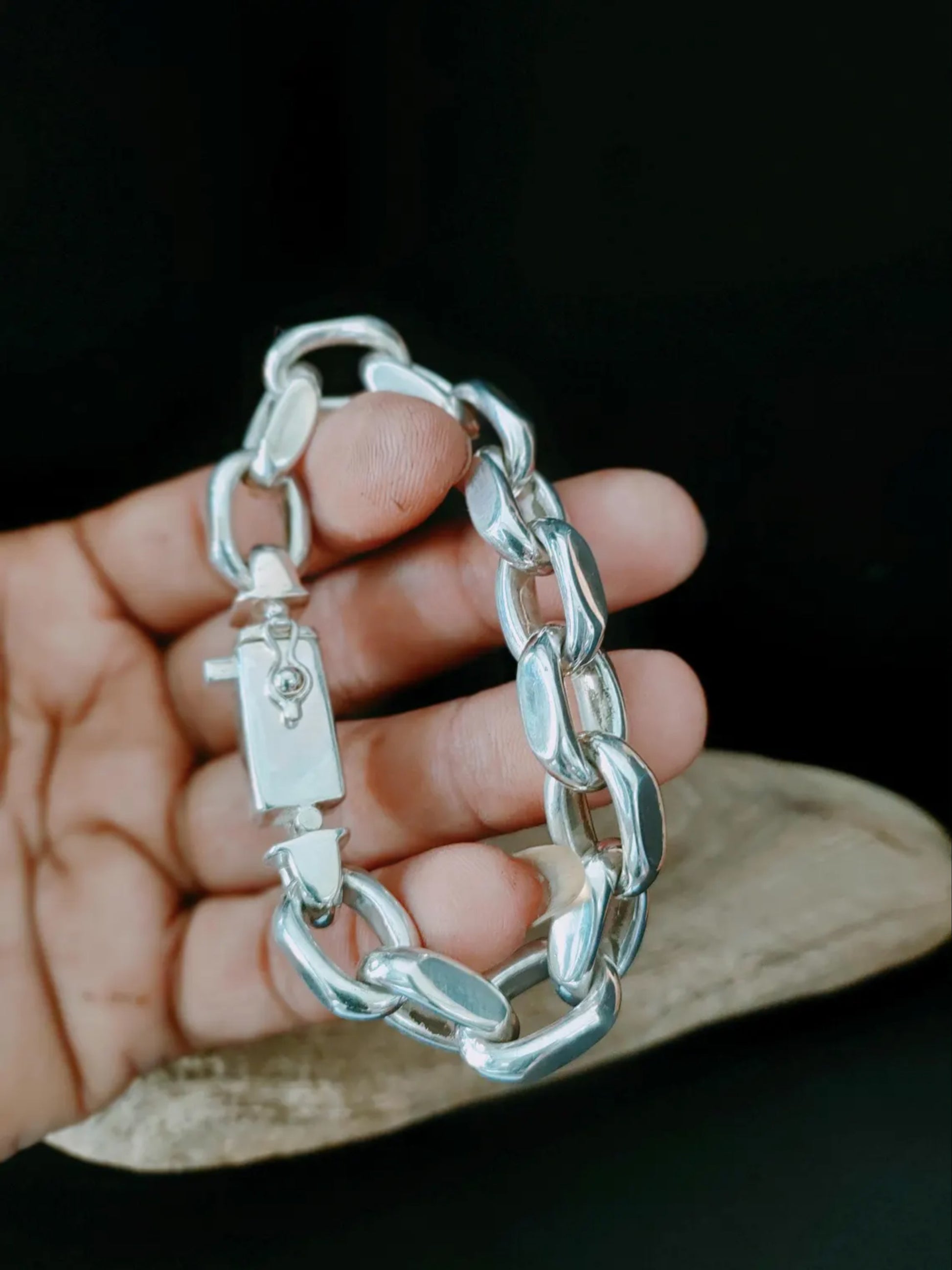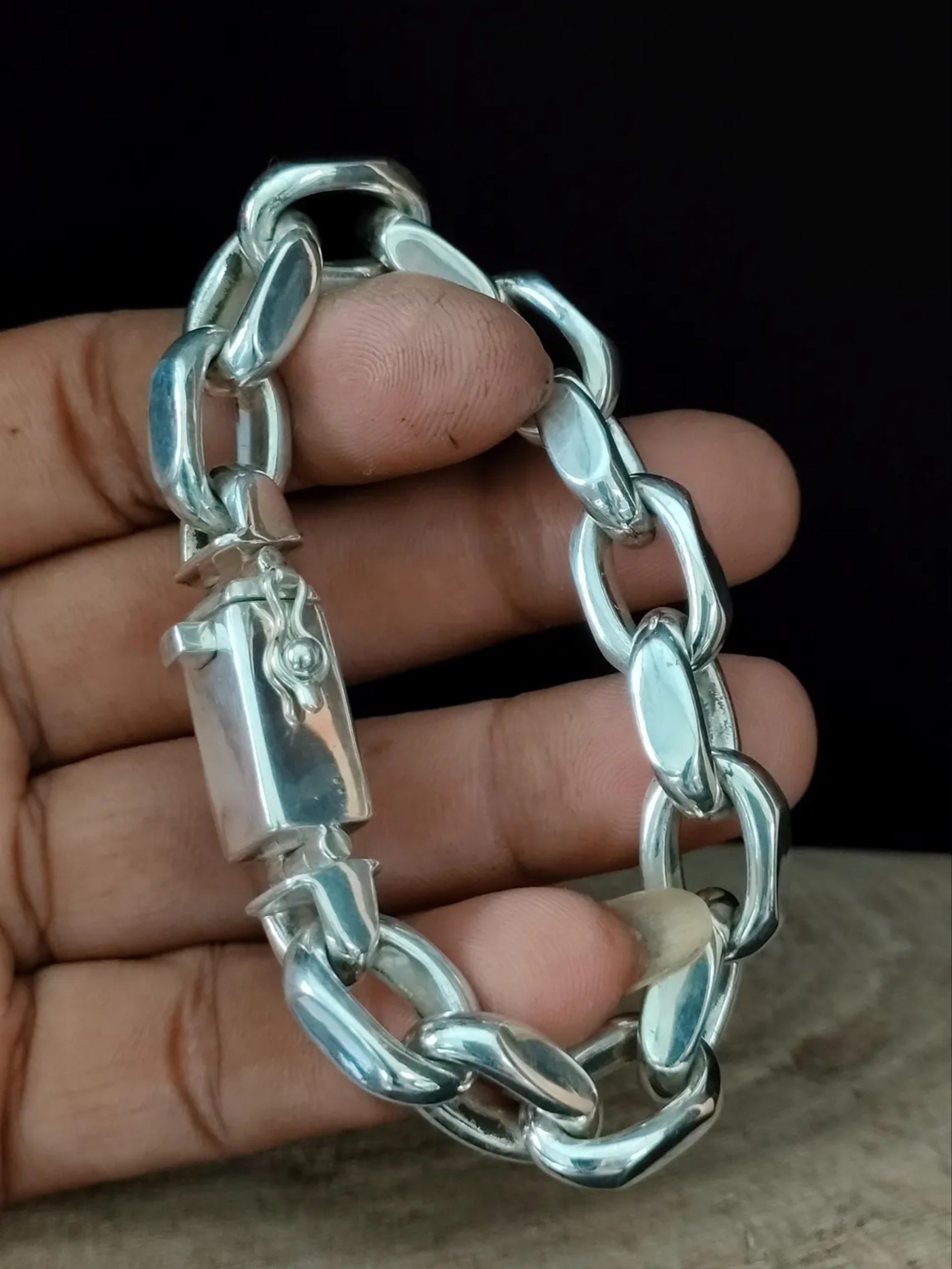 Make a bold statement with our Big Link Silver Anchor Bracelet — crafted for the modern man who values strength and style. This 14mm wide bracelet features solid anchor-style links, delivering a powerful and masculine look. Weighing approximately 90 grams, it's built with heavy, high-quality 925 sterling silver for a premium finish that stands the test of time.