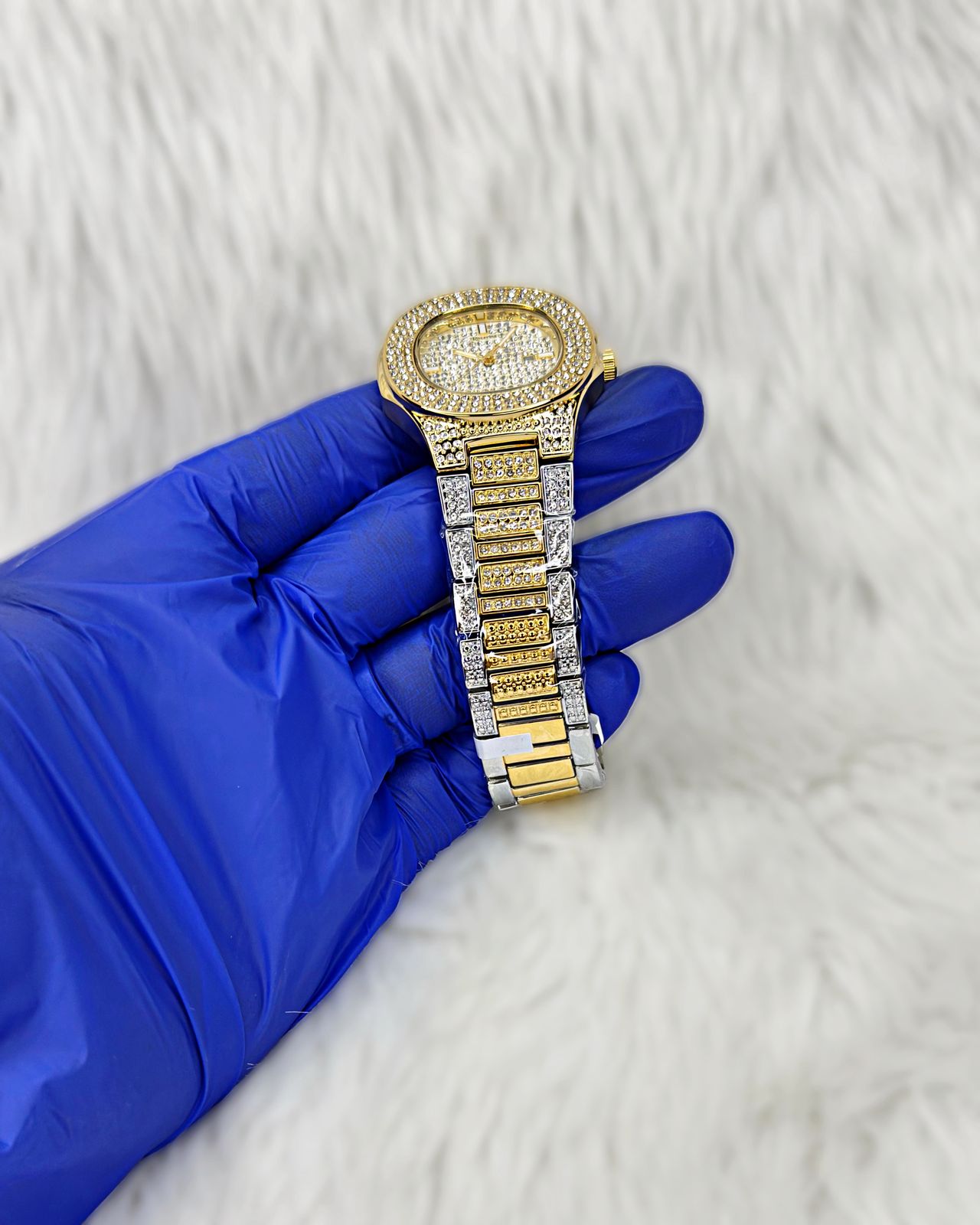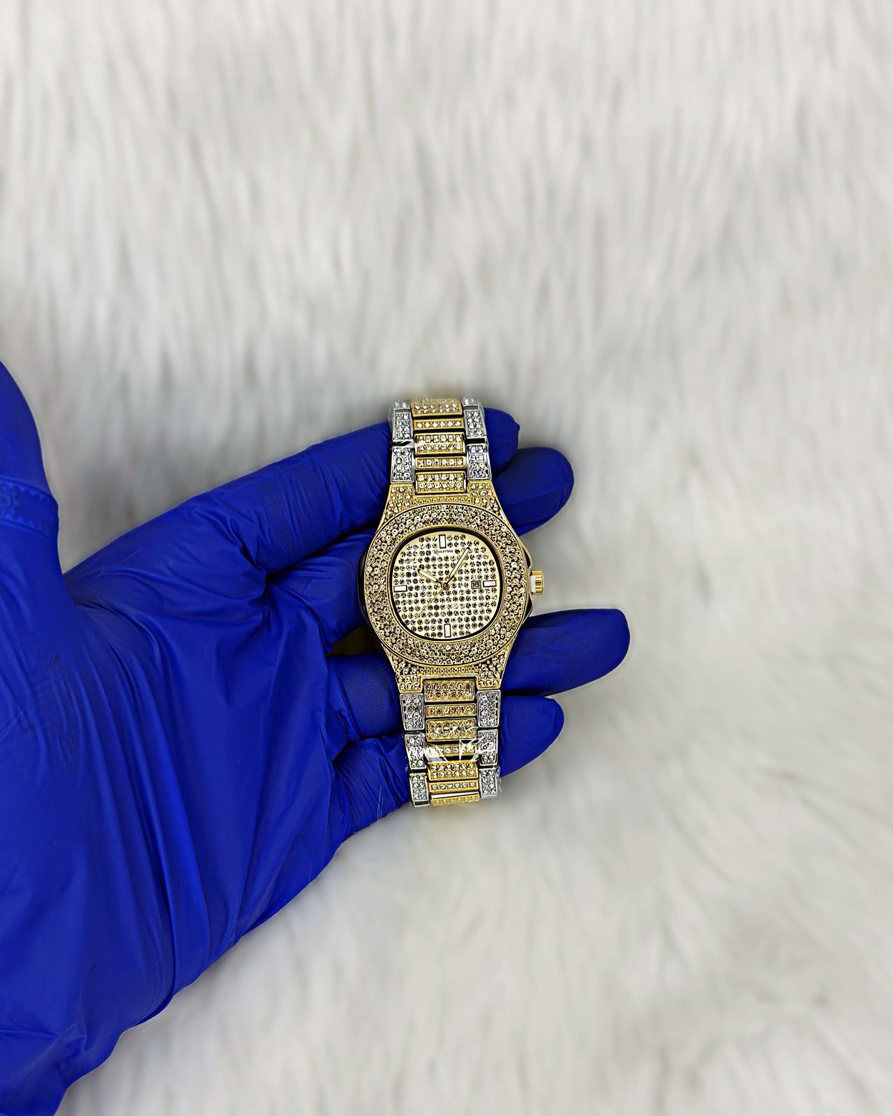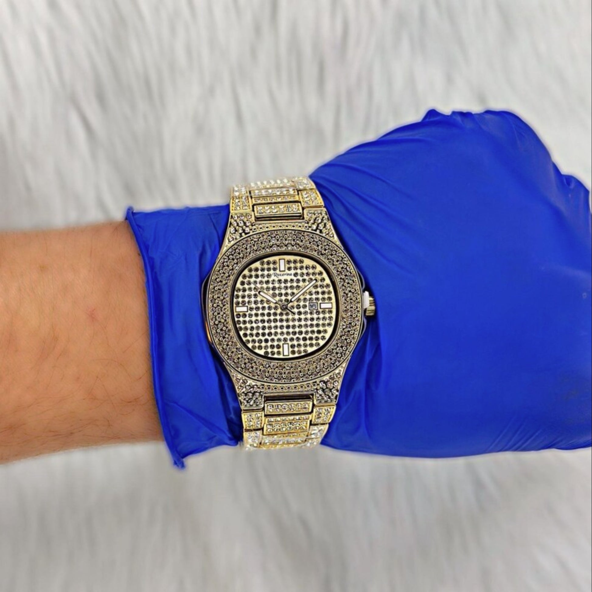 925 Sterling Silver Iced-Out Gold Watch – Bold Luxury with Bling Style