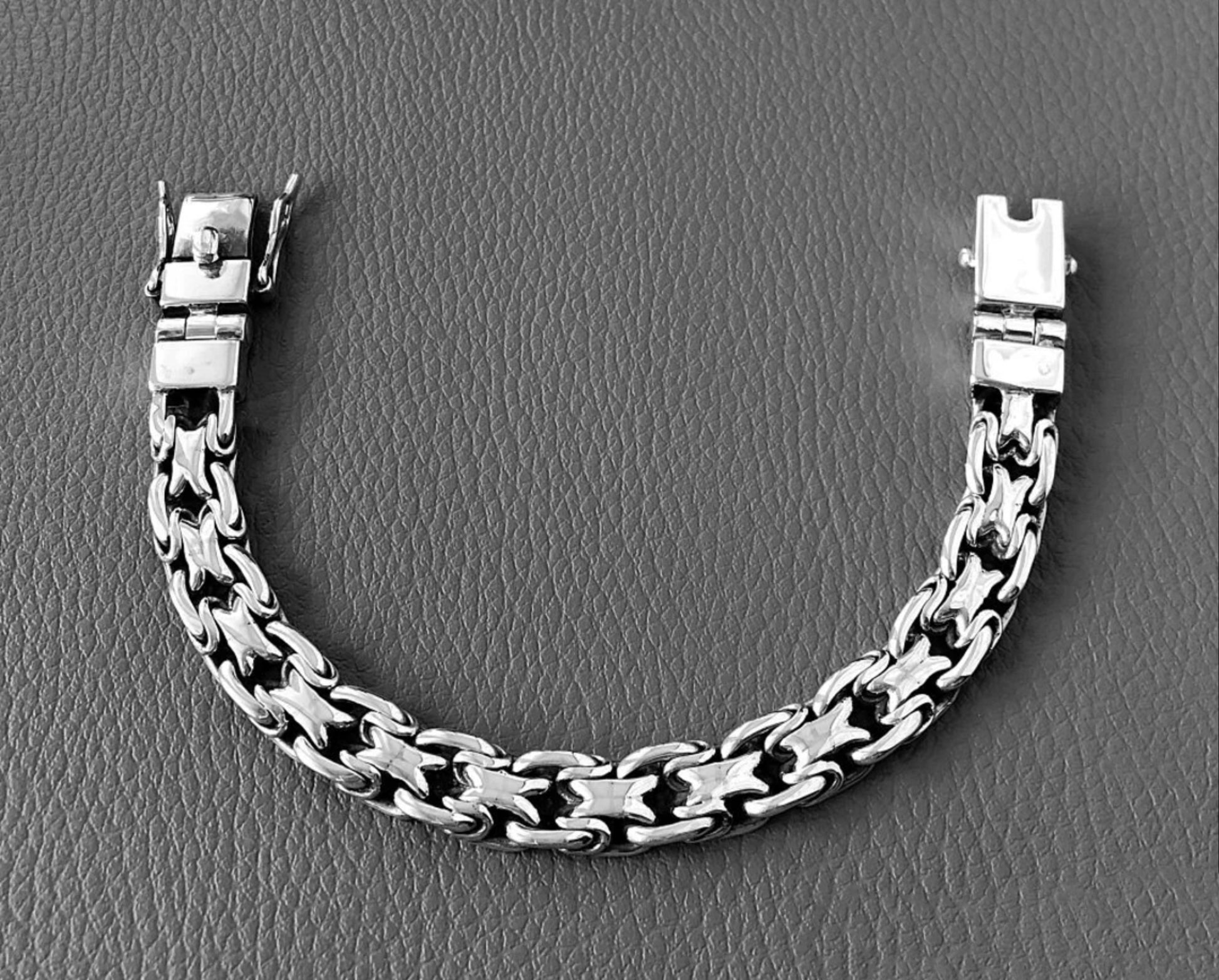 Add a modern edge to your look with our New Style Links Solid Silver Bracelet for men. Crafted from solid 925 sterling silver, this bracelet offers timeless elegance combined with a bold, masculine design.