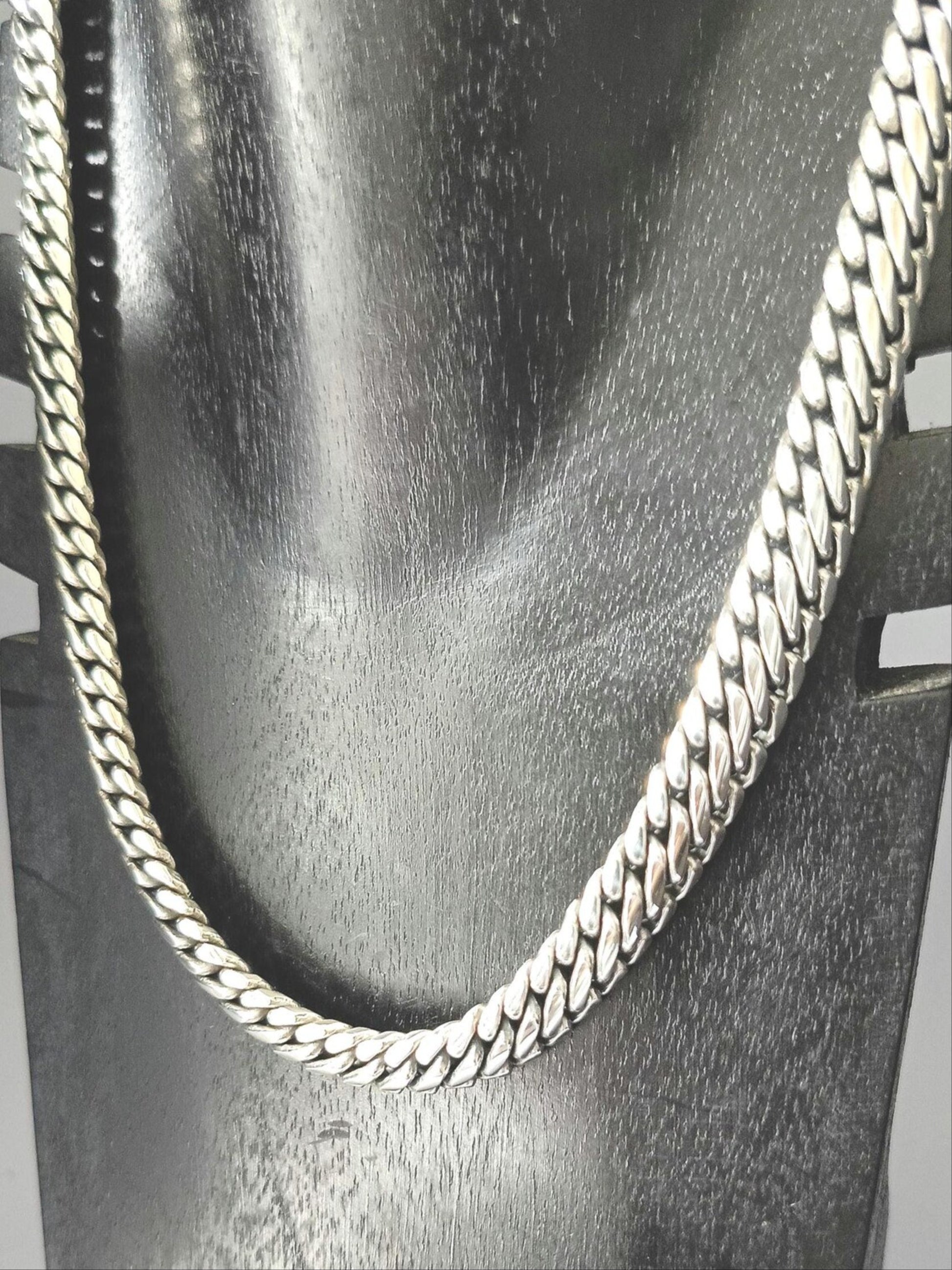 To extend the life and luster of your silver chain, avoid prolonged contact with water, sweat, soap, and deodorants. Store in a soft pouch away from humidity and lightly polish with a soft cloth when needed.