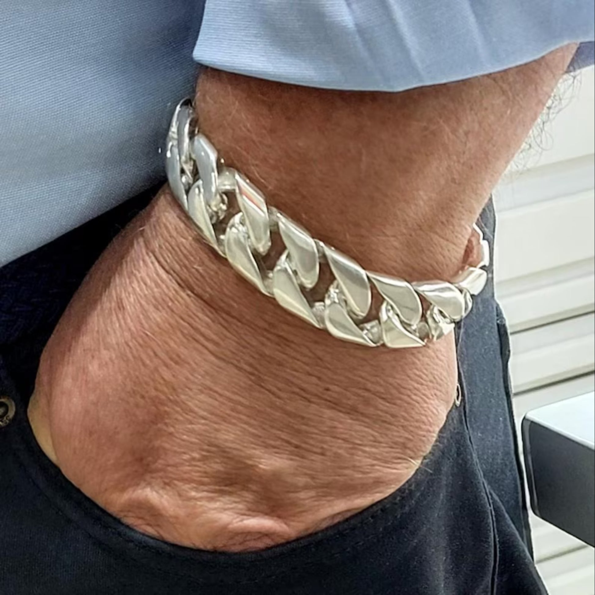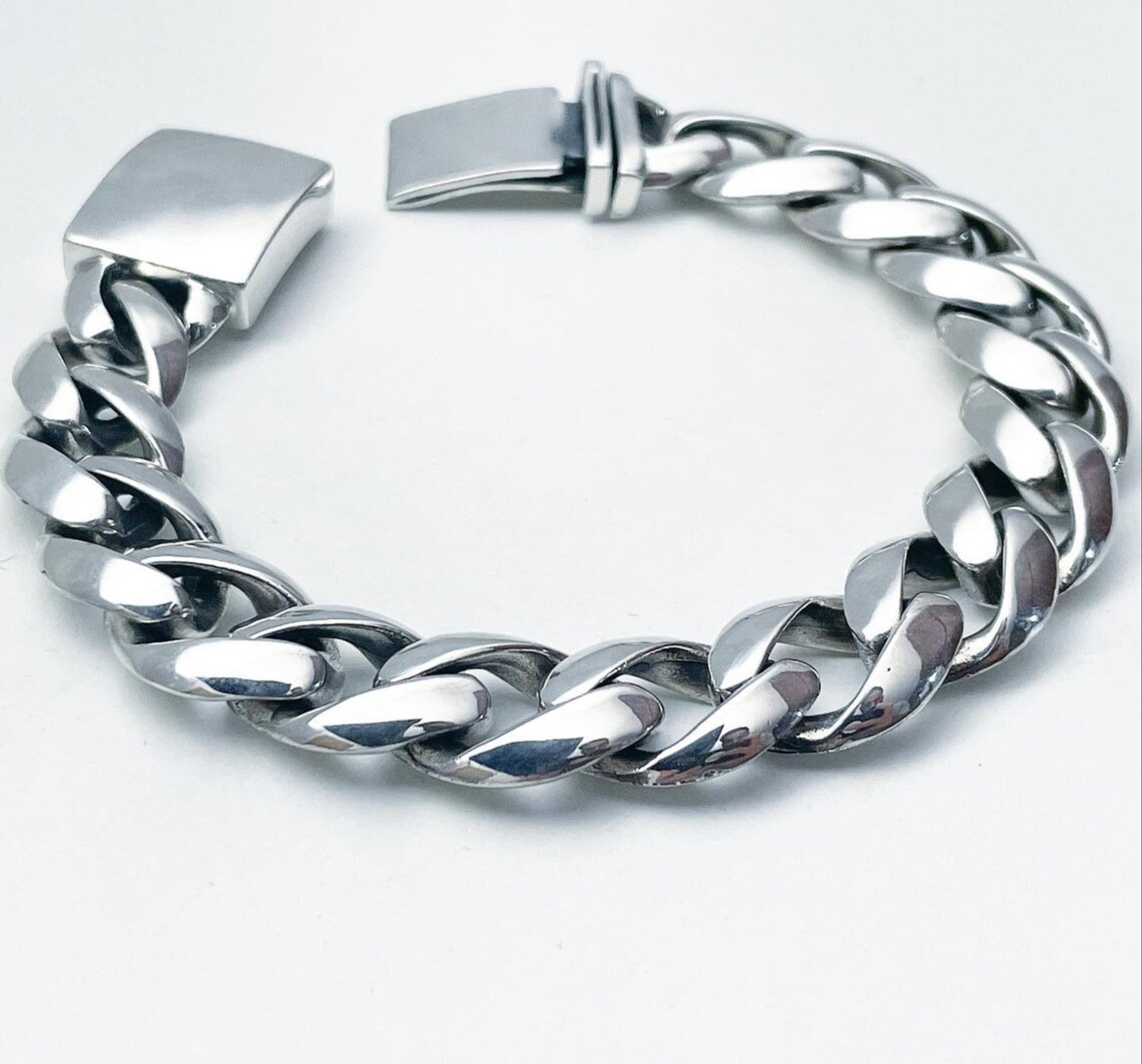 Solid Silver Curb Link Bracelet 15mm – 925 Sterling Silver, 160g