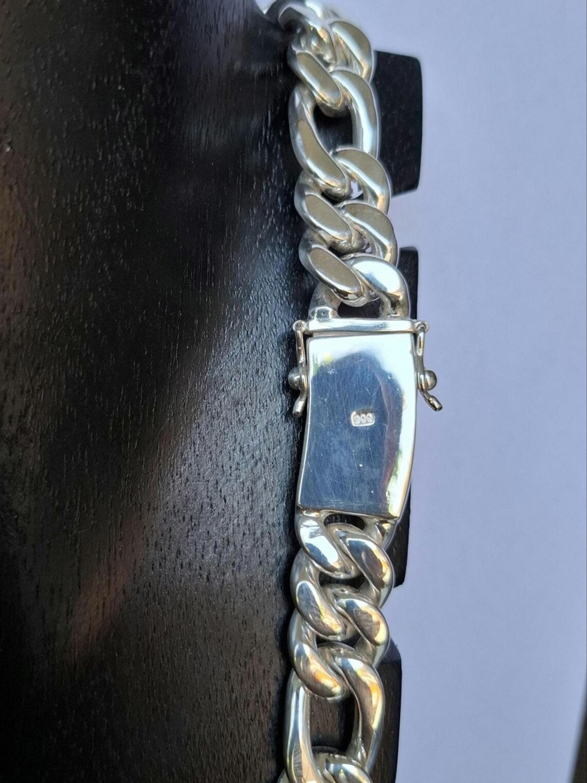 Finished in a high-polish silver shine, the chain offers a rugged edge and luxurious weight. Whether paired with other accessories or worn solo, it adds serious style to any outfit and makes a powerful statement wherever you go.
