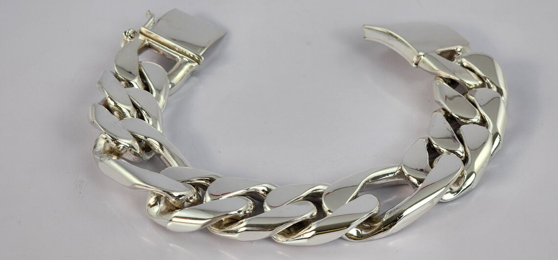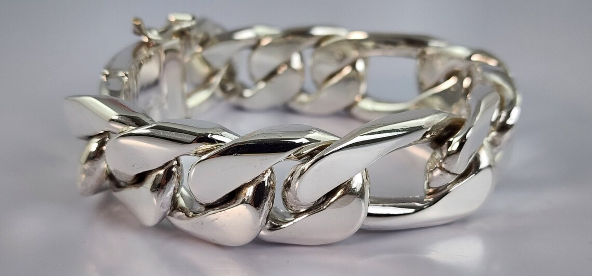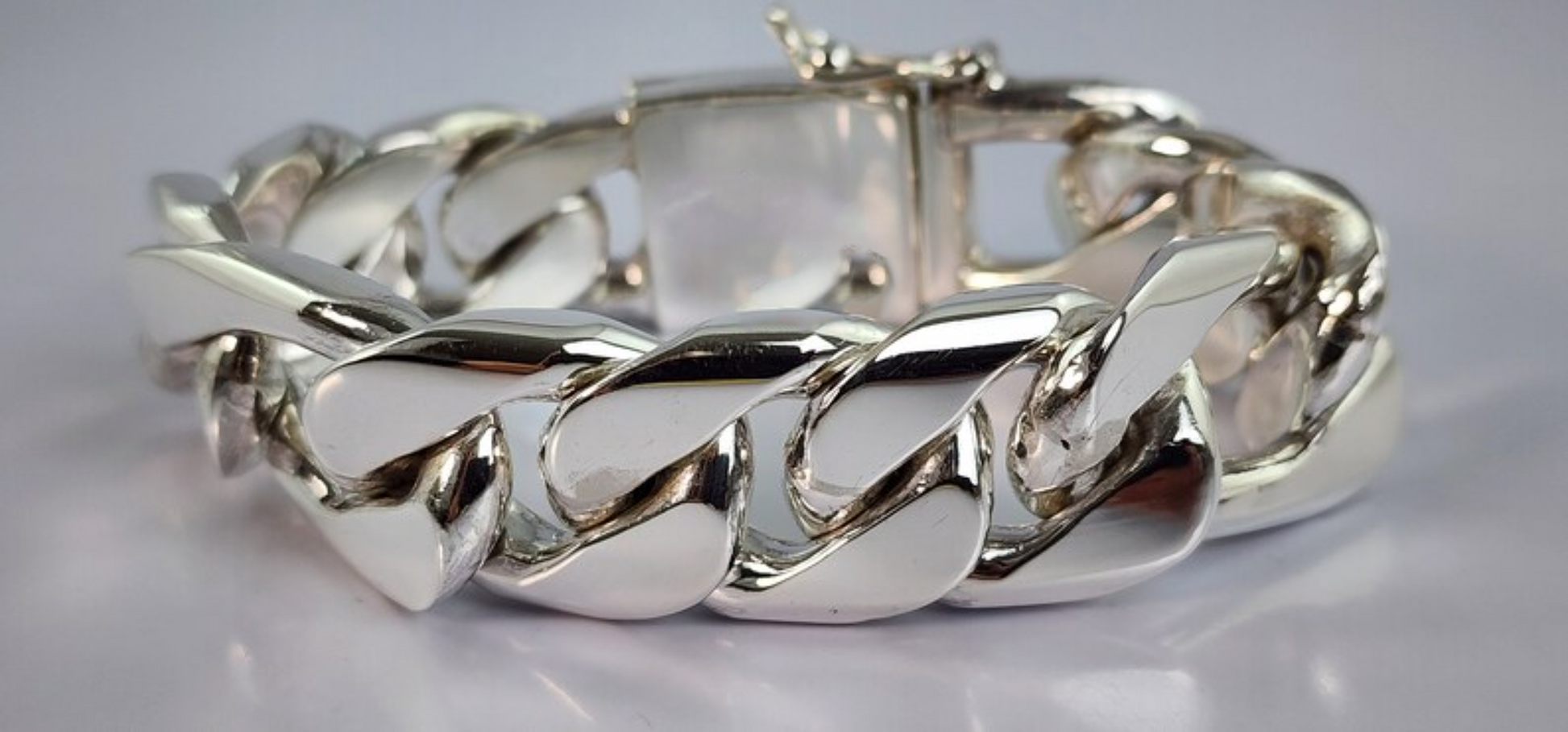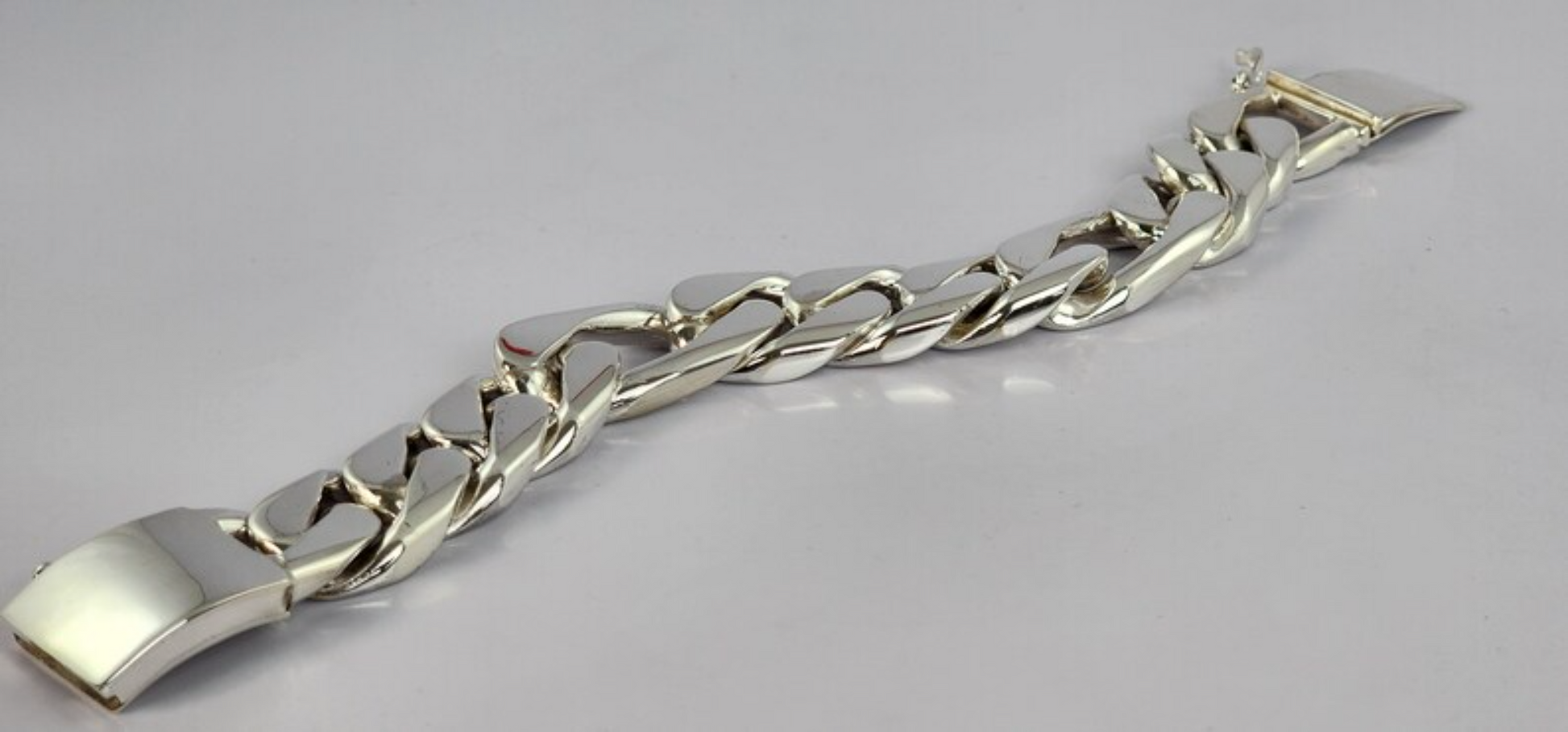 It features an extra STRONG double locking Box clasp. Each link is around 22mm - 24mm wide. The length of each link is 2.7 cm long with every 3rd link being around 3.2 cm long, and the links are around 0.9 cm in depth. Made from QUALITY SOLID 925 SILVER.
