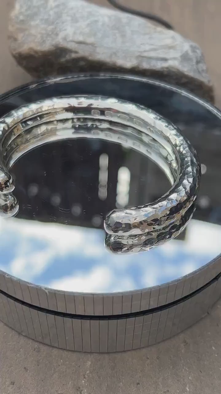 Simply slide the bangle over your wrist and adjust for a comfortable fit. Its sturdy construction ensures it stays in place, making it suitable for everyday wear or special occasions. Pair it with other silver jewelry for a coordinated look or wear it solo for a minimalist style statement.